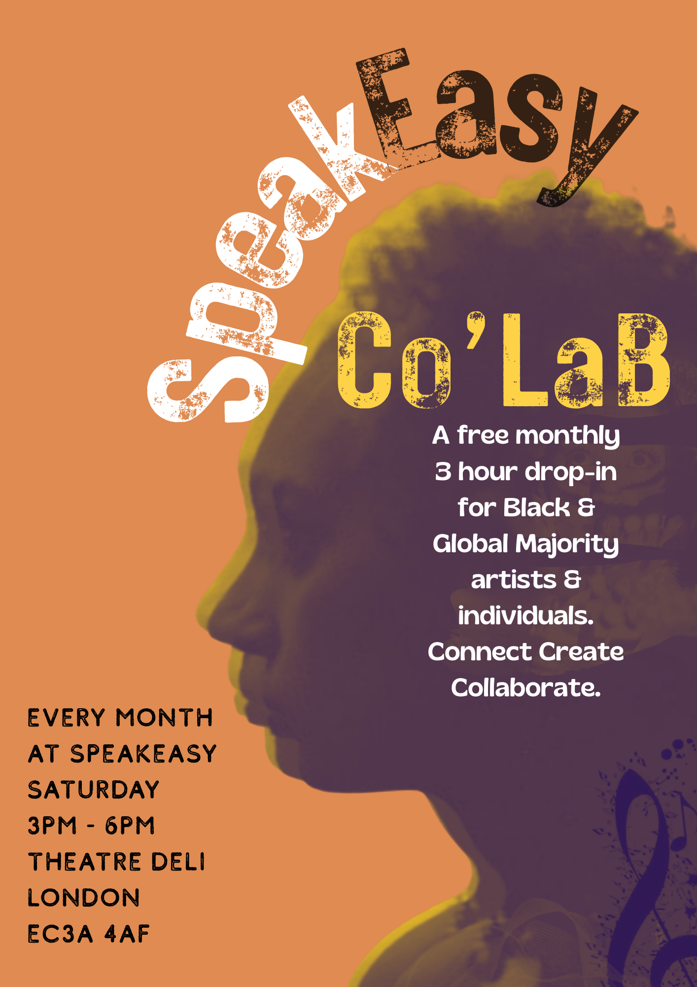 SpeakEasy Co’LaB is a monthly social and creative drop-in for Black and Global Majority spoken word artists, performers, singers-songwriters and musicians as part of SpeakEasy Saturday, which runs from the 3pm - 5pm to early evening at Theatre Deli.